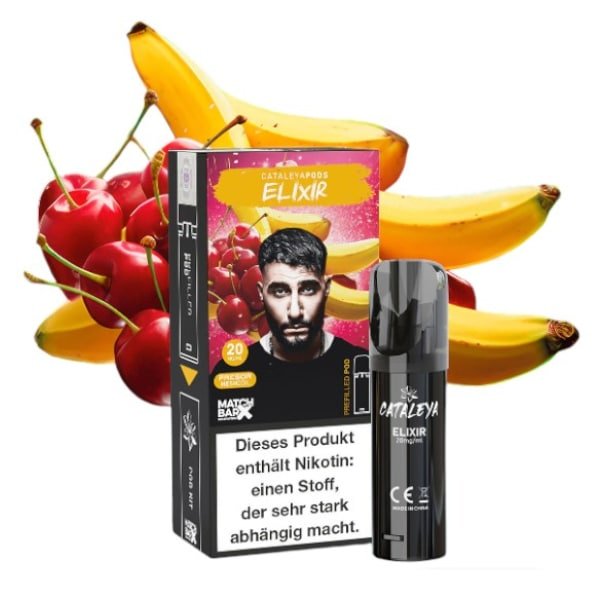 Liquid Pod – KibaBeschreibung: Das Cataleya Pod Elixir schmeckt nach dem beliebten Kiba Getränkt. Elixir kombiniert fruchtige Kirsche mit sonnengereiften, süßen Bananen. Cataleya Prefilled Pods enthalten 2ml Liquid mit einem Nikotinsalzgehalt von 20mg. Ein Cataleya Pod ist für bis zu 600 Züge ausgel..